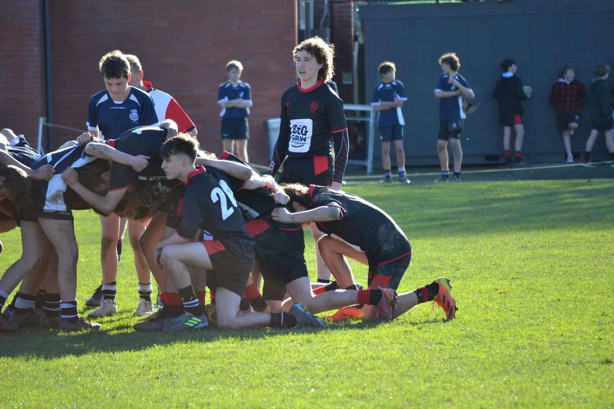The 3rds played at CBHS No 2 on a heavy pitch in pleasant weather. They played into the wind in the first half and whilst CBHS dominated possession in the first quarter strong physical tackling and good ruck work by Bede's kept them scoreless. Gradually the 3rds forwards began to up their game, gain more possession, and put pressure on the opposition line. Lachie Daly drove straight through a ruck to score in the 22nd minute (an important score given the boys high inability to cross the Bede's line earlier). Two more good team tries (including an impressive try celebration by Joshua Macdonald), and one try by CBHS meant that the halftime score was 17-5 to St Bede's - a great effort given that they had been playing into the wind. The second half began with Bedes, playing with the wind at their backs, putting consistent pressure on the CBHS line. Eventually Caleb Stevens sidestepped his way over for a nice try which he converted. Another good team try pushed the score out for Bede's, but Boys' High hit back with two tries to close the gap.The game finished with St Bede's putting a lot of pressure on the opposition line but a lack of patience, some white line fever, and good defence from CBHS prevented them from scoring. A slightly mediocre finish to an otherwise strong performance - with the final score 29-17 to St Bede's. Tries: Lachie Daly, Finn Gavigan, Joshua Macdonald, Caleb Stevens, Jack Dennehy-Coles.