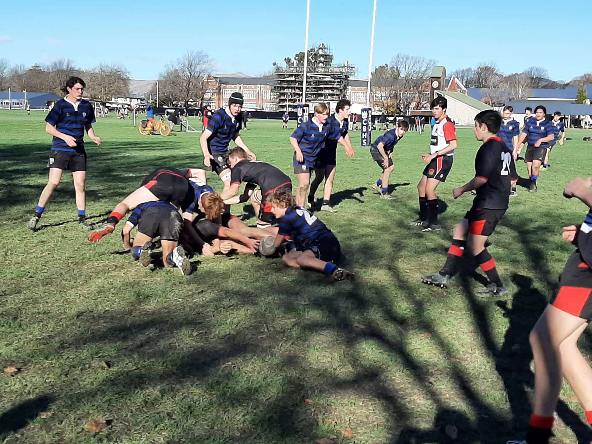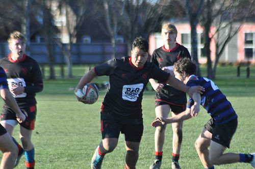 First game against Boys' High "A" this year and the boys had prepared well. The game started with some stout defence by Bedes. We had trouble getting the ball initially and Boys High soon made some inroads and with a nicely-timed short ball in the midfield were in for a converted try. Soon after we finally had some ball and from a well taken penalty kick to the corner the forwards drove over from the resultant lineout with Bede Giera scoring on his welcome return to the team. A handy conversion by Reuben McIntyre and the scores were tied 7 apiece. This seemed to inspire the boys and from there were able to apply real pressure on defence. The boys were starting to recognise the variation Boys High had with their passing game and were able to make it really difficult for them to get across the gain line. This also meant we were able to gain more ball from ruck turnover or dropped passes. Unfortunately a nasty knock to one of the Boys' bHigh players meant the game was moved to no 1 while he was attended to. The half continued as an even contest with field position being key. With no further score and the norwester at our backs in the second half the boys were in the game.