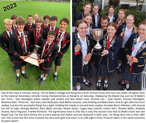 Soon after the win the Maadi Camp Rowing Club Captain gifted the cup to the New Zealand Amateur Rowing Association and stated that the cup is to be used to foster inter-schoolboy eight-oared rowing for annual competition as a challenge cup. The cup was hereafter renamed the Maadi Cup and the illustrious competition was born.