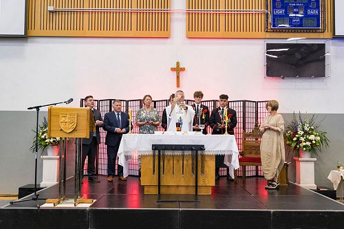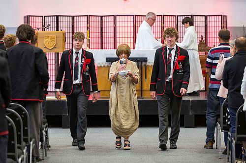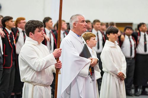 After communion, each Year 13 leaver was presented with his leaver’s crucifix. Mr McDowall reminded the boys that these were a gift from the college and ‘a reminder of Jesus’ death and resurrection and of His constant message to us, of love and forgiveness’.