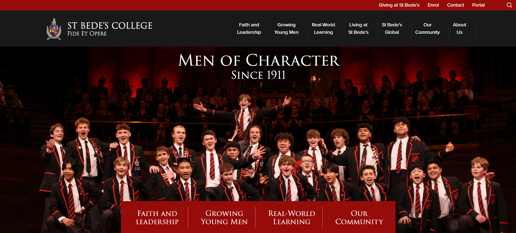 The new site boasts a modern design with large, captivating imagery and clear, concise information. Our vision is for the website to serve as a showcase of St Bede's to prospective members of our community, both locally here in New Zealand and globally. Additionally, it will act as a central platform for parents and families to easily access school portals and to members of our wider community and old boys to stay informed and up to date.
