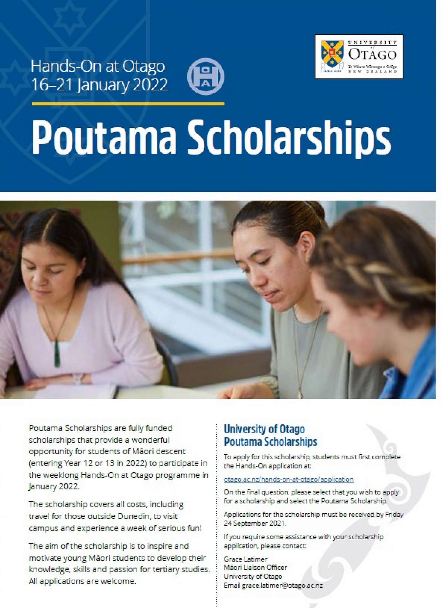 Hands-On at Otago 2022 will run from 16–21 January and is open to all students who are in Year 12 or 13 in 2022.