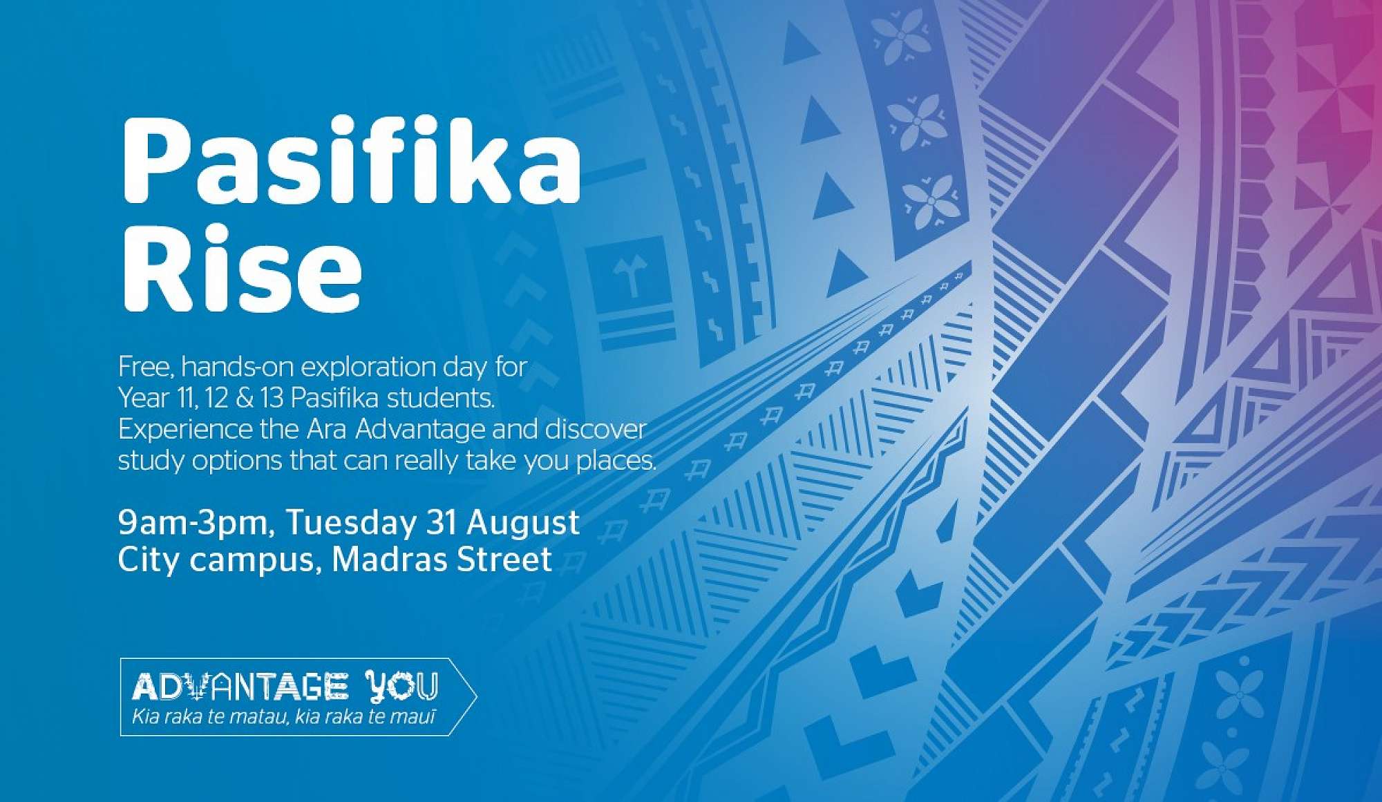 For those travelling to Auckland, our bus registrations are now open and students are able to register their seat on these buses. Seats are limited so please encourage your students to visit openday.ac.nz to register which will then allow students to click on the links to register for the buses.
