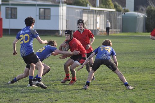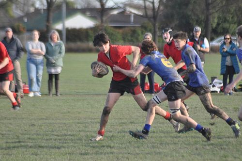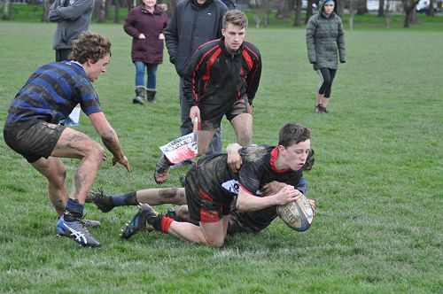 First Half: The first ten minutes saw the Blue team defending their line with the opposition attacking non-stop. Good strong defence kept the opposition from scoring early in the game. This got the morale of the Blue team up and when given the opportunity to attack with the ball they didn't hesitate. After an 80-meter march down the field, the Blue team was rewarded with the first try. From there the lesson learned was that holding onto the ball allowed us to play our brand of attacking rugby, which is what happened. Two more tries for the Blue team followed with great hands through the backs and smart kick and chases setting these tries up. Half-time score 15-0. Second Half: This half turned into the game of rugby that was expected on a muddy day. This half became a tight battle between the forwards with big tackles and strong runs. The opposition came out looking like a team that was not down on the score care and really took the game to the Blue team. After again sustaining the initial onslaught from the opposition it was our turn to go on the attack. Unlike the first half, it took five minutes of sustained pick and goes for the Blue team forwards to get over for the only try of the second half. This took the final score to 22-0. Great win for the boys in muddy conditions. Onto the semi-final next week!