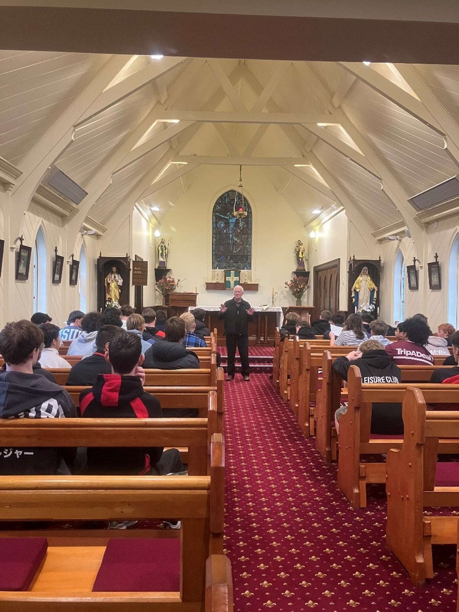 The day concluded by heading to St Patrick’s Church, where old boy Fr Geoff Gray (1956-1960) is the Parish Priest. He was very excited to talk about his time at St Bede’s, but also gave the boys a greater understanding of the historical significance of the Church.