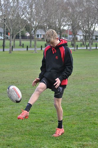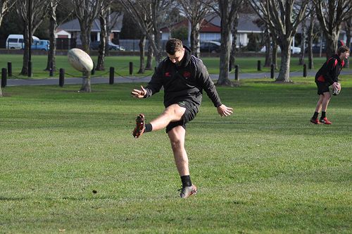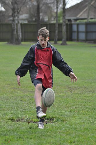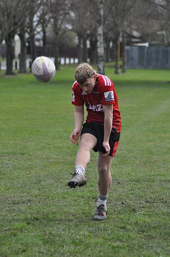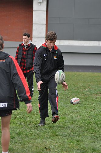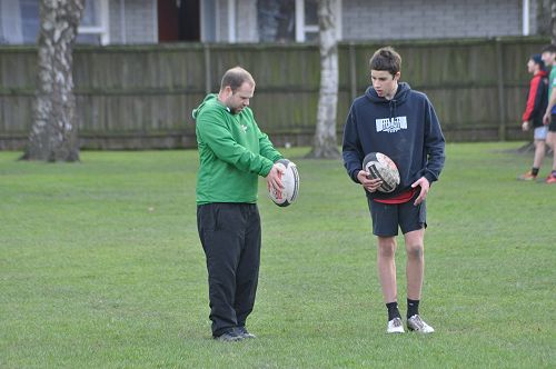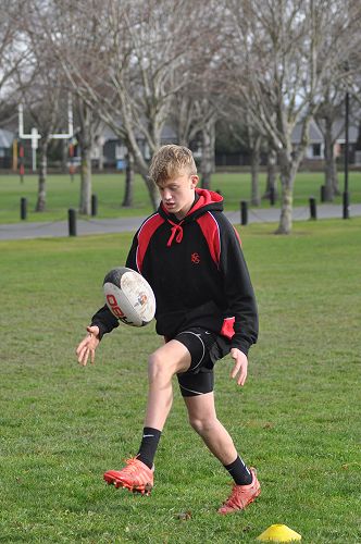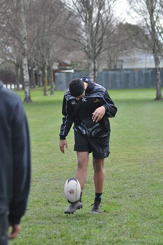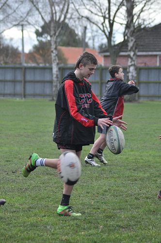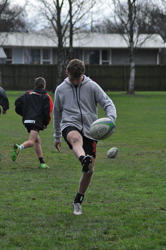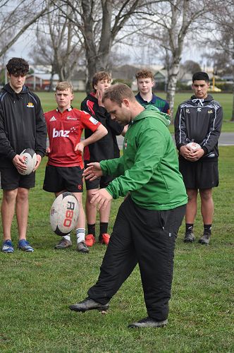 Strahan McIntosh ran a kicking-from-hand session for 17 of our boys today. He covered the fine detail of various aspects of kicking and dealt with questions skilfully.