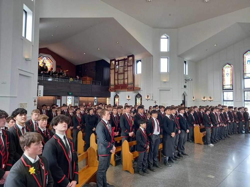 On the Friday before Tournament Week, all teams and coaches taking part gathered for Benediction at break – the Chapel was full. After Benediction, the Captain of each team was presented with St Christopher medals for his team and coaches.