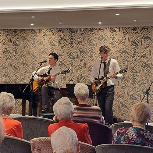 Visit this articleRecently, two of our students, Joe Coyle and William Forrester, brought joy to more than 250 residents at Dianna Isaac Retirement Village as part of a special Mother’s Day celebration.