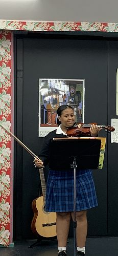 Performing on the piano were Kelsey Bloomberg, Shreya Sharma, Alice Ormandy, Laureigh Tuitama, Ceanne Tolentino and Xanthe Dickie. The performers were accompanied in duets by their teacher Kris Zuelicke. Following on the violin were Ishita Patel, with Kelsey and Laureigh giving their second performances, with accompaniment from their teacher, Heather Miller.