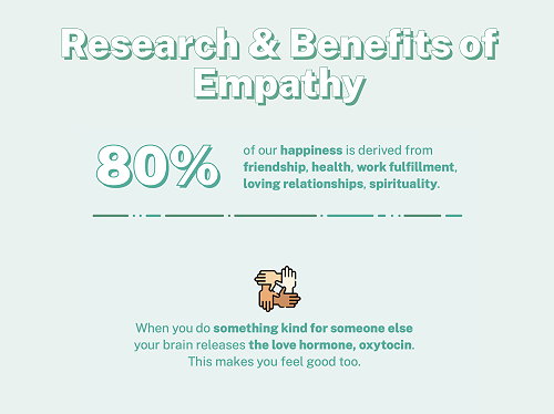 Research shows that practicing empathy, such as performing acts of kindness, taps into our brain’s ‘mirror neurons’, builds compassion and our behaviour becomes more social and community-based.