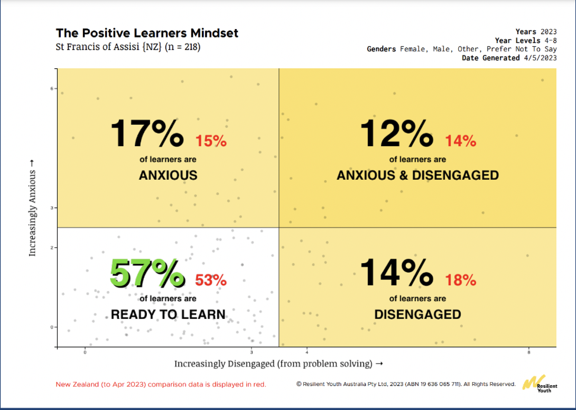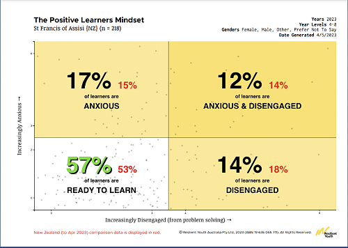 The statistics that Hugh shares in the video are Australian and we don’t have an exact NZ match for them - however our Year 4-8 students completed the Youth Resilience Survey at the end of last term - and we are able to share these results with you - with a comparison to the NZ averages (numbers in red).