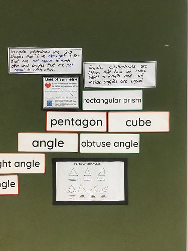 Sort and classify plane shapes into classes and sub classes according to defined geometrical properties such as number and relationship of sides; number and nature of angles-including types of lines and size of angles and the properties of each; number, nature, and shape of faces and surfaces (for 3D objects).