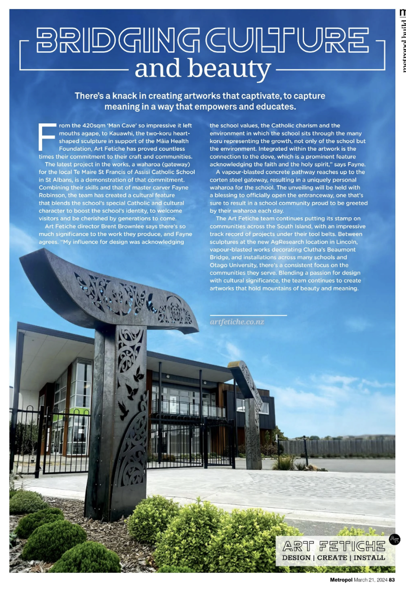 Our beautiful new waharoa (gateway) has been featured in the latest Metropol.