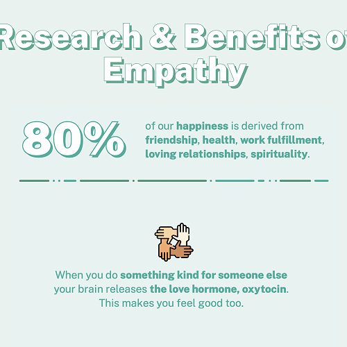 Visit this articleWorking on empathy helps us to identify, understand and feel what another person is feeling. When we show empathy, or we do something kind for someone else our brain releases oxytocin. This leads to increasing our self-esteem/confidence, energy levels, positivity and overall happiness.