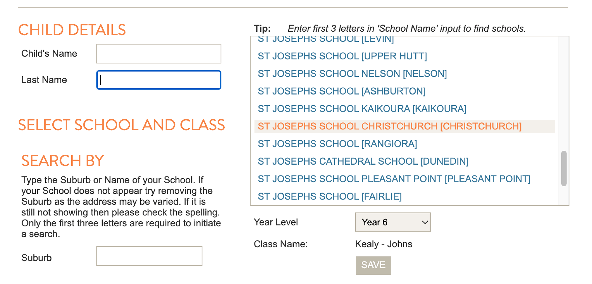 Please note the school lookup is case sensitive. See screenshot for details to enter: