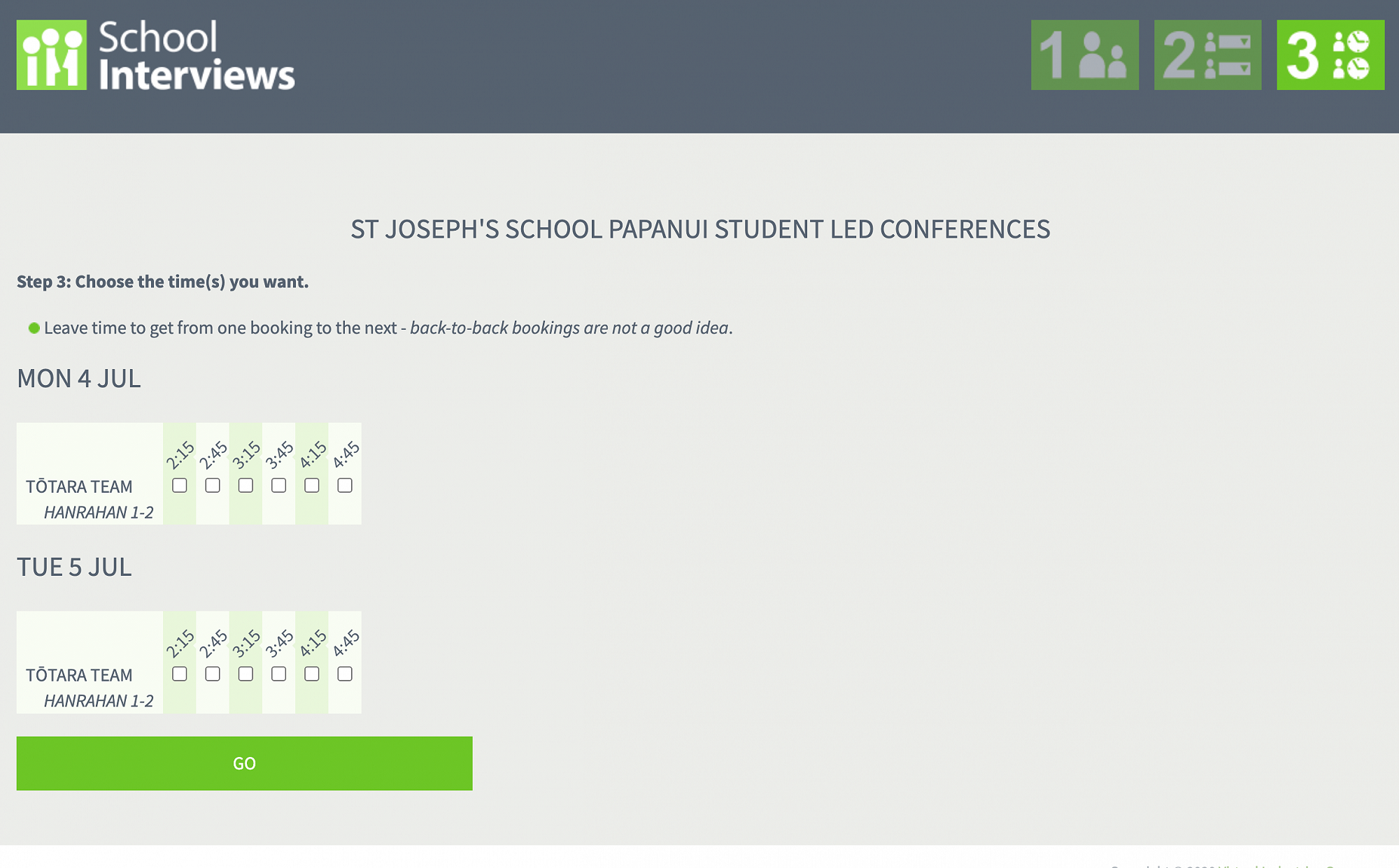 We use an online booking system - School Interviews. The facility will allow you to see what times are available and to book times that suit you.