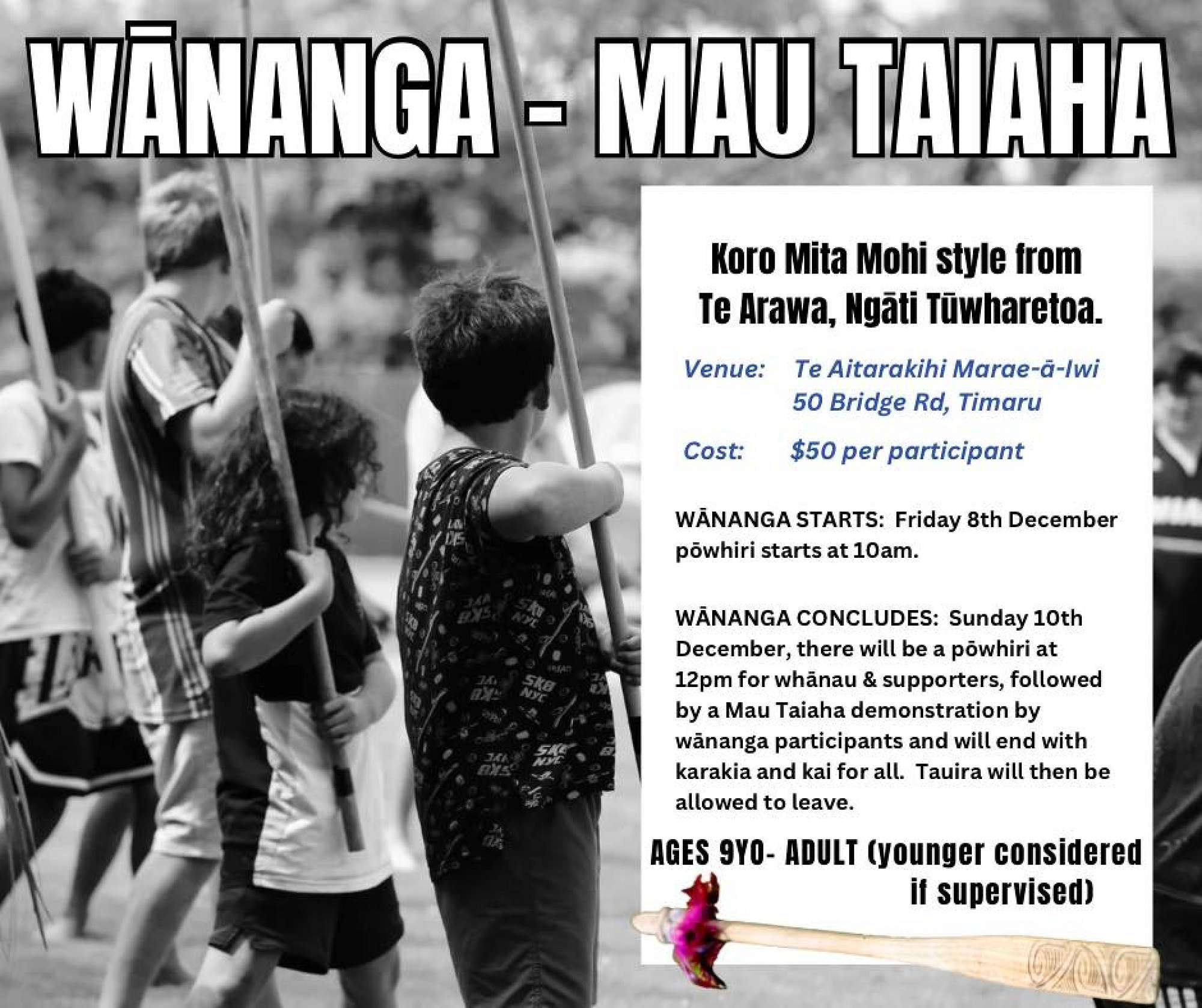 8-10 December - Te Aitarakihi Marae-ā-Iwi, 50 Bridge Road, Timaru