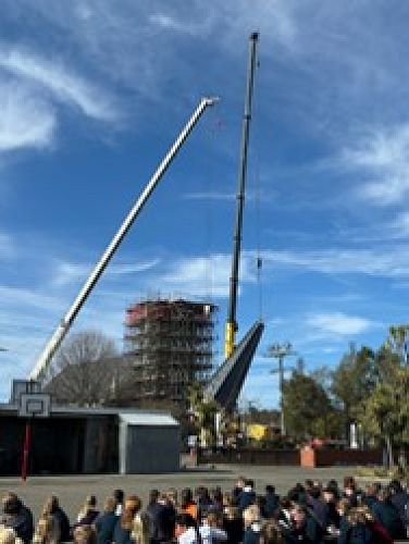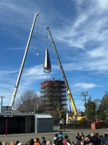 The students enjoyed watching this process, and were enthralled by the sheer size of the cranes that were used to lift the structure onto its perch.