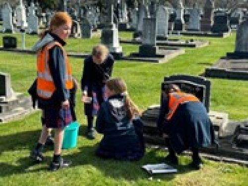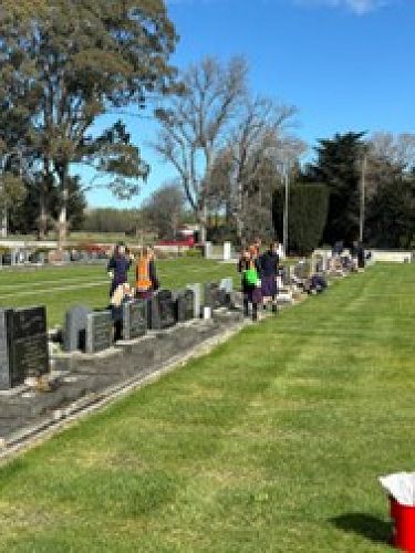 To conclude this learning, we participated in some Social Action: the junior school made ‘peace cards’, put together packets of ‘peace seeds’ and delivered them to mail boxes in our local community. They also did their bit for the environment by collecting rubbish from around the streets of Temuka. Room 2 and 3 spent an afternoon at the cemetery, giving some headstones some tender-loving-care, righting wind-blown vases, putting flowers back to their rightful place, and tidying anything that needed it.