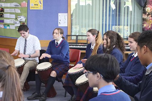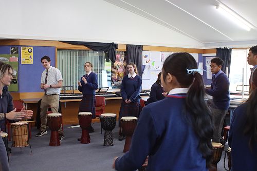 The Year 10s had a similar lesson but with a more complicated rhythm. This time, Ra taught us a rhythm from Côte d'Ivoire called Kuku-Bela, which explored multiple different rhythms and challenged even our best drummers, while keeping simpler parts for our beginner students.
