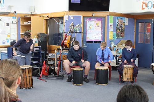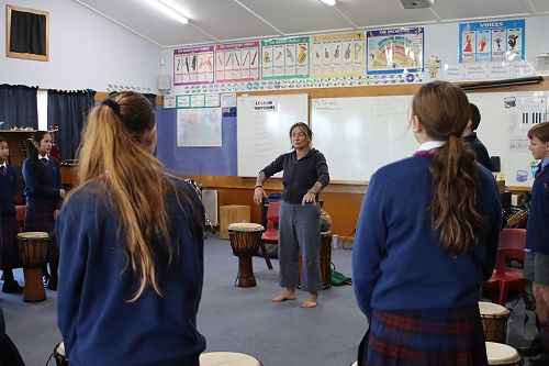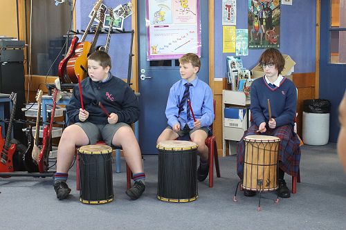 On Monday both our junior music classes were given a special treat when Ra McRostie visited our school with her djembe drums to give us all a lesson on West African drumming. Ra has travelled the world exploring drum and percussion sounds and has over 20 years of experience with these instruments.
