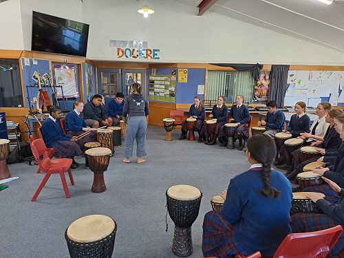 Junior music students were treated to an unforgettable drumming workshop on Monday, as Ra McRostie brought the rhythms of West Africa to life through her high-energy lessons on the djembe and traditional percussion.