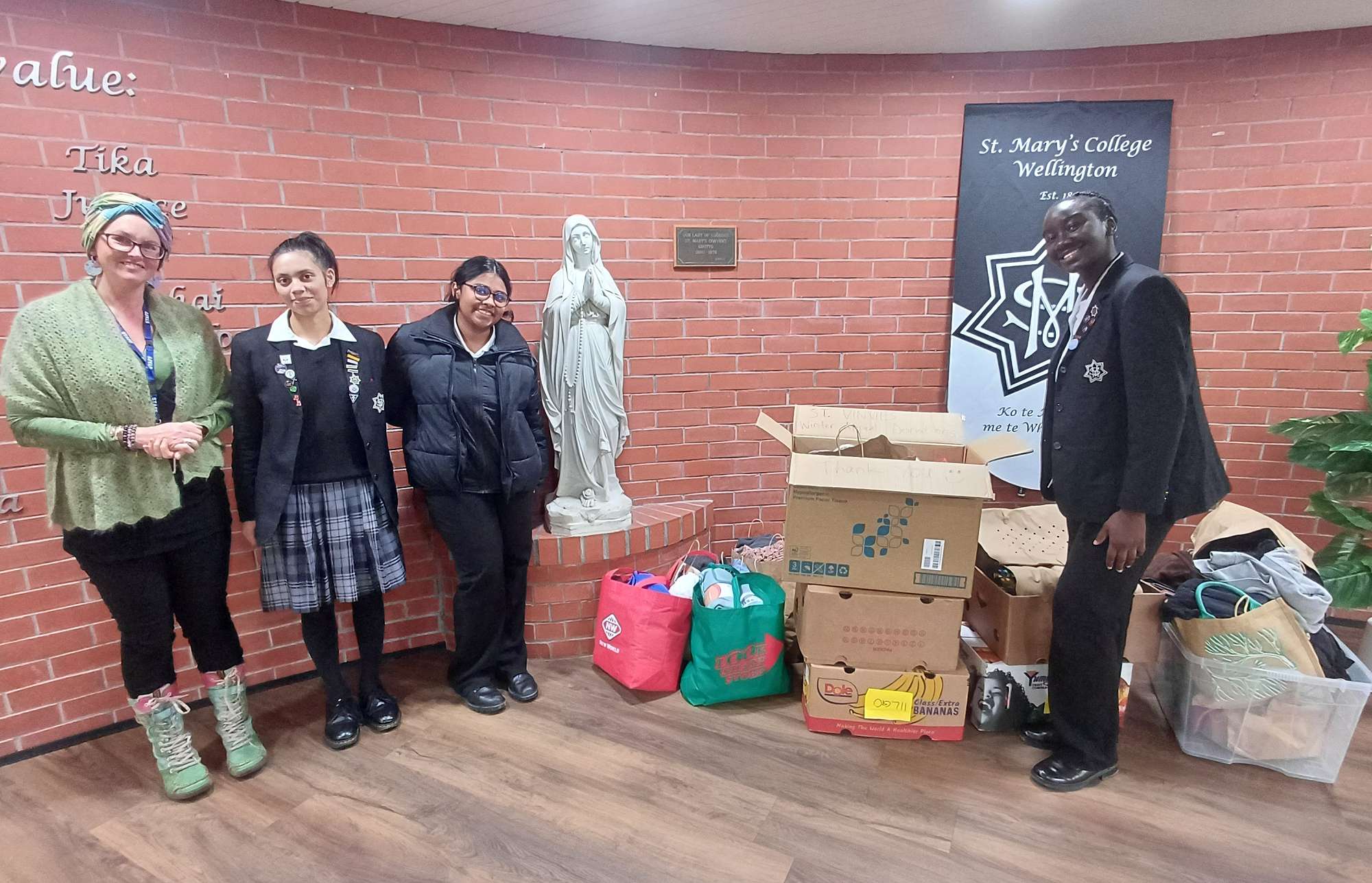 Our St Vincent de Paul group and Social Action Committee leaders have spent this term collecting items to donate to the St Vinnies Winter Appeal - warm clothes, blankets, cans of food, and more. There have been collection boxes all around the school and we want to say a huge thank you to those students and whānau who have been able to make donations.