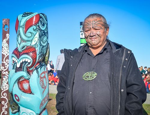 We love sport! We put basketball, soccer, and rugby balls on our Pou to show how much we love to play sport. We wanted to show the importance of te reo and tikanga Māori in our school. We used our Kapa Haka uniform design as it represents us. Our pattern is of the hammerhead shark, mangōpare because it represents our relentless determination, strength, vigour and fighting spirit.