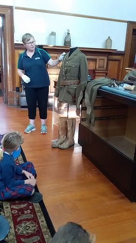 The Junior and Senior children visited the Waimate Museum in two separate groups. The Educators from the South Canterbury Museum helped us to understand the timeline of World War 1 as well as aspects of the war through a local lens. We read and talked about stories from local war veterans, saw and discussed real artifacts from World War 1, and some children even thought they may have found some of their family members in photos of some of the Waimate Soldiers who were heading off to War.