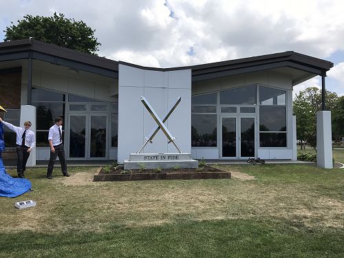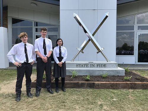 This year, our Year 13 cohort commissioned Cam Besley, a stainless steel expert from Mainline Sheetmetals, to create an enlarged version of the crossed swords from St Paul’s crest along with the school motto (State in Fide) inscribed underneath.