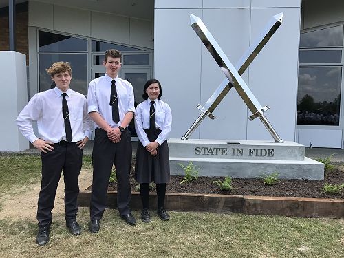The sculpture, positioned on a concrete plinth and located in front of the Mary Hornsby Music Centre, will remind all who pass to unite and stand firm in the faith.