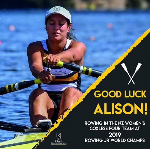 Alison follows in the footsteps of Collegians - Grace Watson and Kate Littlejohn - who have represented New Zealand on the world stage in rowing, and are now pursuing their sporting passions overseas.