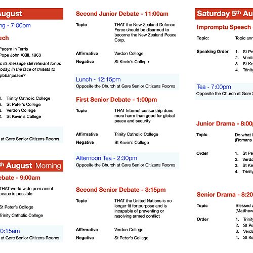 Bishop's Shield Timetable