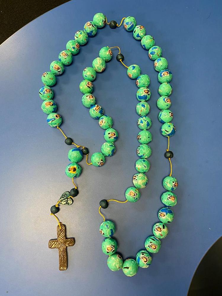 When Father Stuart left our school at the end of Term 2 he carried a lovely set of rosary beads with him, a gift from us all.