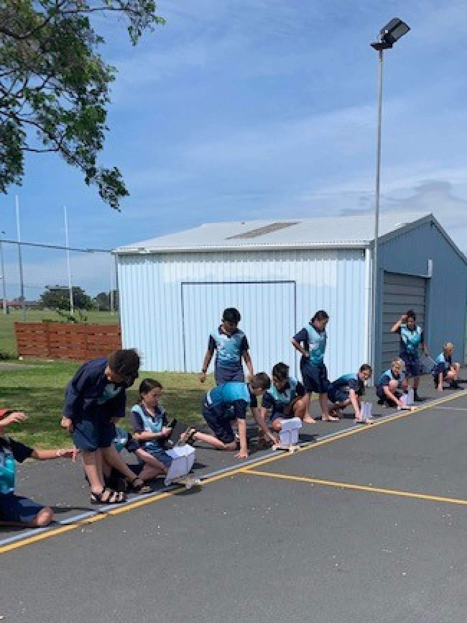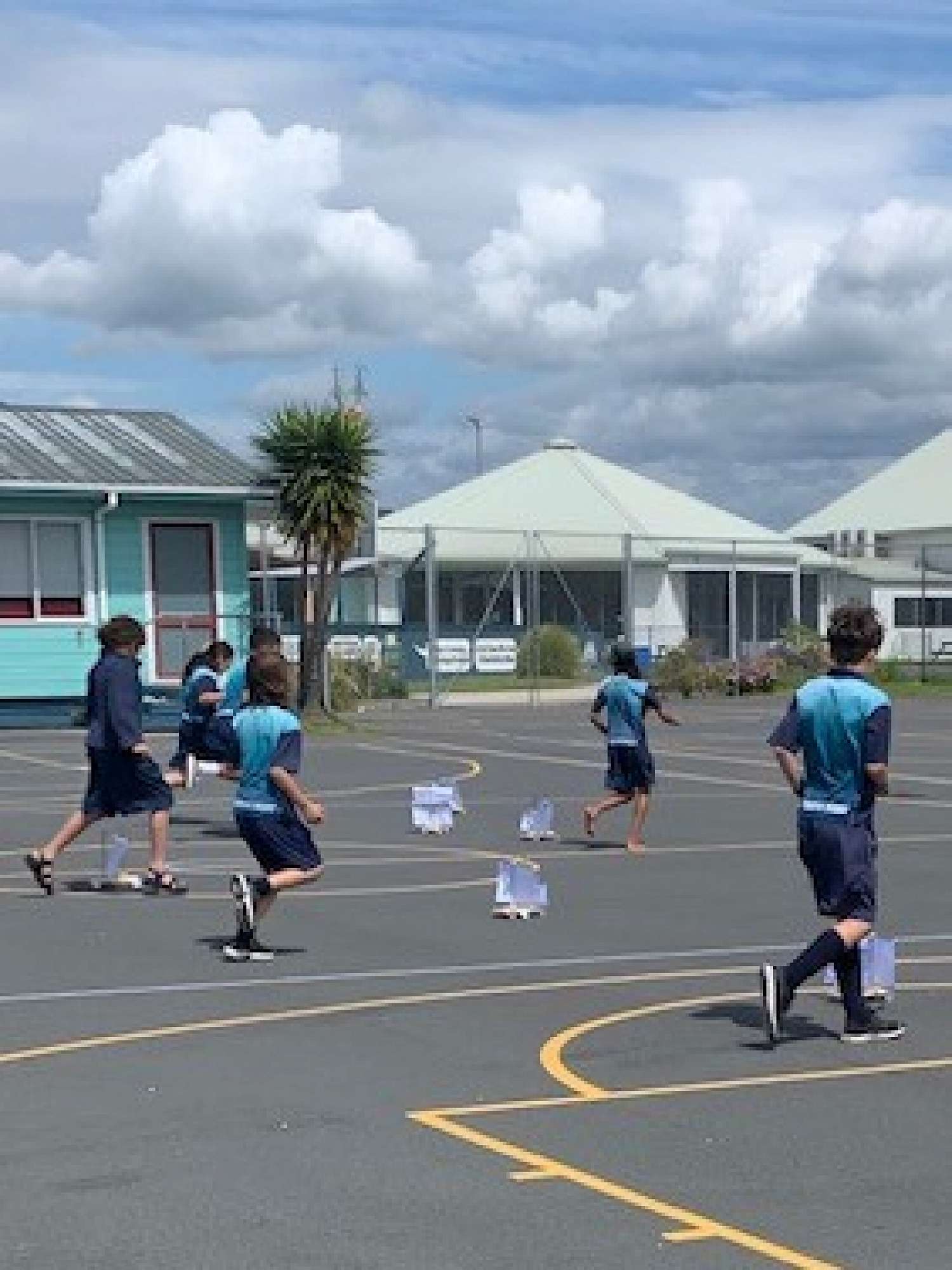 Year 5 and 6 have been trialling the weight of their yachts versus the amount of wind needed to move them. They used Mr Webster's wind tunnel to learn about the effects of the wind on large models then they took their smaller models out to race them on the courts.