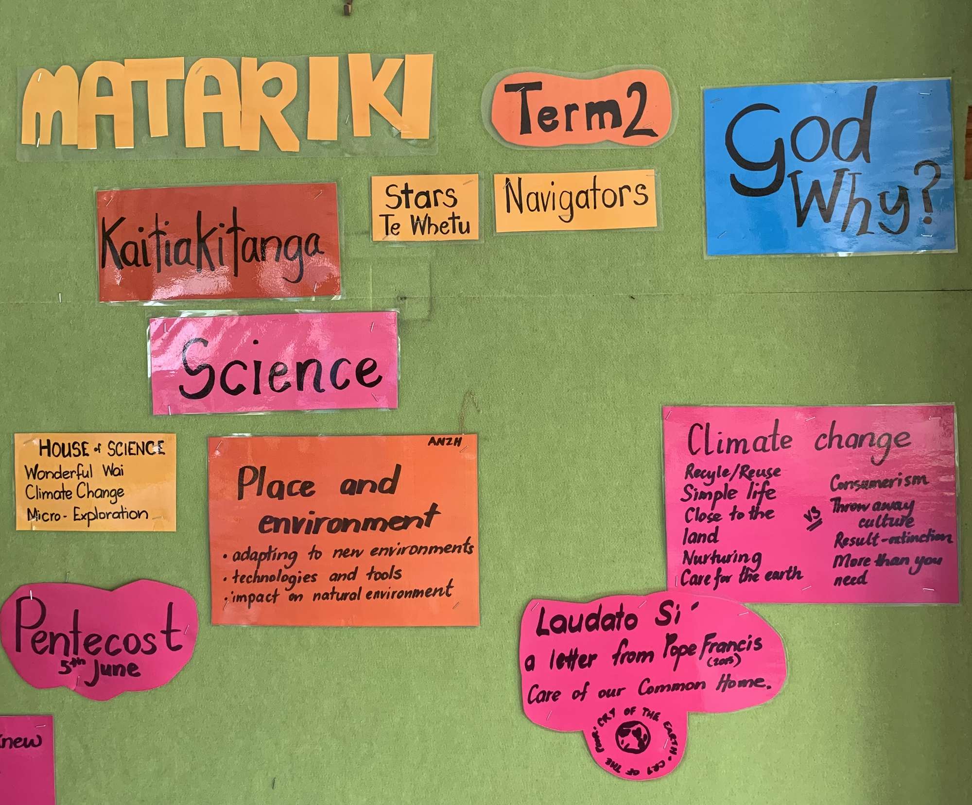 Term 2: God the creator. Creation narratives. Cause and effect. The gardens - taking care of our environment and taking care of our community. Reciprocity. Gathering data. Monitoring change.