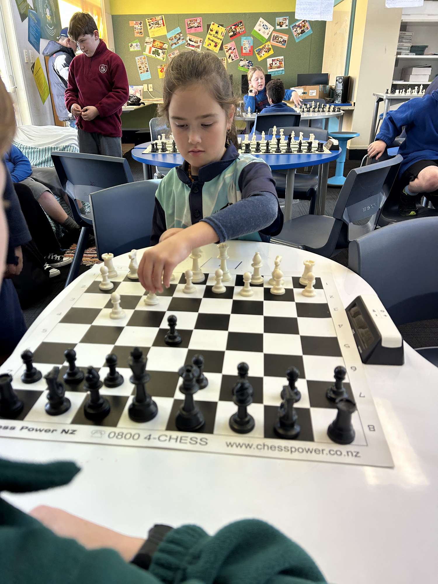 Harmony Kelly-Harding - Chess: After the long welcome in the gym myself and the other 3 chess players (Dyco, Antony and Nathan) gathered in a group and went outside to one of the classrooms. We took 15 minutes just to start then we started, I don't remember who I was playing for the first round. In this version of chess you couldn't take the king off the board so you had to put the king in checkmate, I didn't really understand this rule. For this one round I was paired up with a person from St Mary's Tauranga and the whole time I played I felt worried and pressured to move because he was moving as fast as sonic. I lost that round. The last two rounds were the best because I won both. When I put this one kid in checkmate, he just refused to give up but I got bored so I called the teacher over. At the end of the day, everyone gathered together to present the certificates. When the sportsmanship trophy went to St Mary's Tauranga it sounded like a volcano was exploding and everybody was screaming. At the end of the day I had to wait with James for 45 minutes cause my mum had to finish work. He entertained me with Marco Polo and we sat on the bar outside and we were getting attacked by the Chinese flag. Overall my favourite part of the day was playing with James on my 2 minute break. Also, getting him to go buy me a lollipop because I couldn't leave. I gave him money to buy so I don't feel bad.
