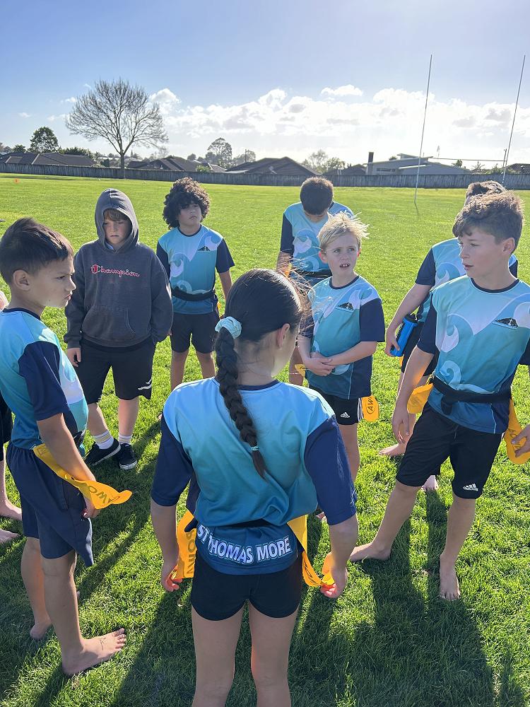 Serena Heijkoop and Quinn Link - Rippa Rugby: After the welcoming at the warm gym, our team needed to walk in the freezing cold wind over to Aquinas’ back field to start practising for Rippa Rugby. We did some pacing drills and running drills. Our coaches were Kelsey (Quinn’s mum), Alan (Luca’s dad), Toby (Charlie’s dad) and we even had help from Ollie Smyth. The people that were playing in the Rippa team were Serena, Khole, Quinn, Erick, Charles, Luca, Charlie and Kali. Serena was the captain of the Rippa team. The first team we played against was St. Mary’s Tauranga at 10.45am they won 4-0. Then when we had our second game, against Suzanne Aubert. We played Rippa with them at 12.15pm and guess what? We won 7-2! Our third and final game was against St. Mary’s Putaruru at 1.15pm. We had won again, but this time we won 11-3. We thought we were going to make it to the finals, but we didn’t because we needed to win all of our games and we only won 2. But after we finished our last Rippa game we watched a tiny bit of the Rippa finals, and the schools that were playing were St. Mary’s Tauranga and St. Mary’s Rotorua. It was a harsh and insane game. After we finished watching a little bit of the finals we went and got our bags and headed to the nice warm gym. It was such a privilege to come to Aquinas College and play Rippa Rugby. We are so beyond grateful that we got picked to be in the Rippa team.