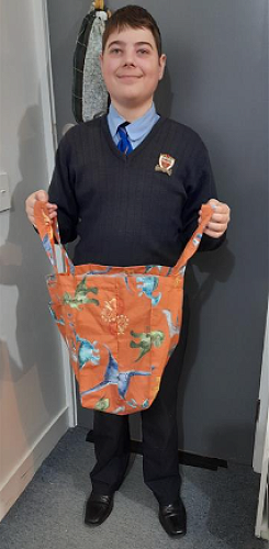 Each boy did a sample using a sewing machine before creating their shopping bags. To create their shopping bags, they each learnt how to lay out the fabric and pin the pattern along the grain of the fabric, after having learnt more about sewing machines and the different settings and hand movements (turning the handles the correct way was an interesting task as none of the boys had done this before).