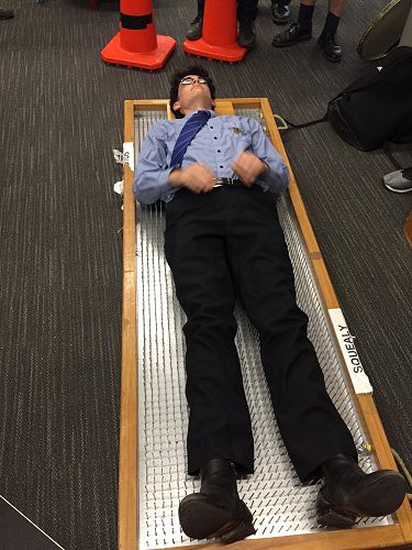 This week we went to University of Canterbury. As well as investigating radioactivity, the boys also got to look at liquid nitrogen, rotational motion and investigate the effects of pressure with a bed of nails.