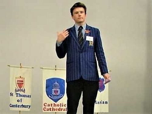 Our two Prepared Speakers were the next competitors. Brooklyn Heather, Junior Speaker, gave a powerful speech on “One punch, One kill” which gave a strong message to the young people in the audience about the dangers of resorting to violence to settle an argument – he was placed third. Our Senior Speaker, Jacob Brown, spoke on the need to be positive in a pessimistic world. He got a great reception from the audience but was unfortunately not placed.