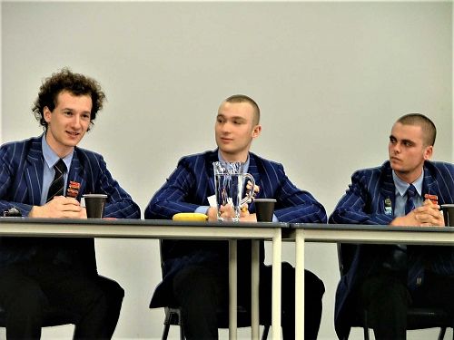At this stage Marian were already winners of the Shield but four schools, including us, were all tied for second place. It all hinged on the Religious Questions. Our team of Pawel Gall, Romek Gall and William Topham showed a deep understanding of Pope Francis’ encyclical which was appreciated by the audience but they were not rewarded with a placing.