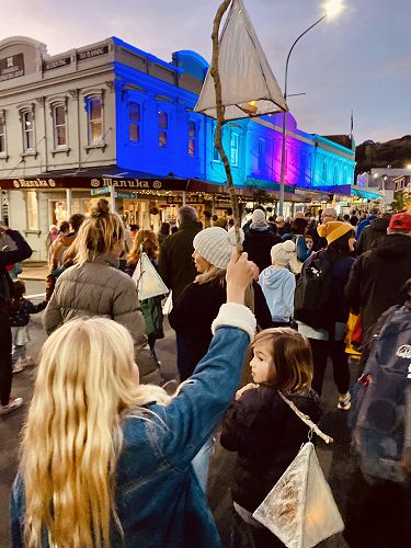 These beautiful images are of James V (Rm 2) and Mia V (Rm 4) carrying their lanterns for the hikoi to the summit of Takarunga, Mt Victoria.