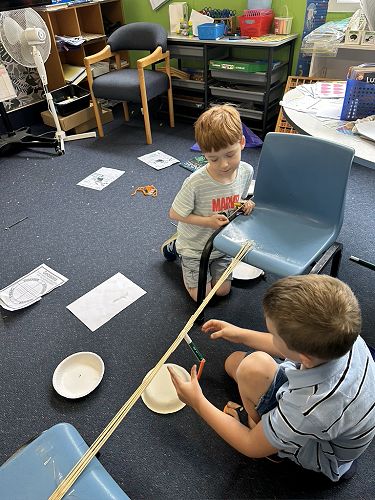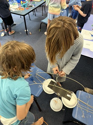 William M: We had to build a bridge that was strong enough to hold a toy car. We connected our bridge with Bruno, Rocco and Wilder's.