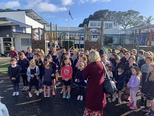 We sang Sweet Caroline, Hallelujah and Te Iwi ē. When we were done singing we were super relieved. Miss Moynagh and Mr Offner said we were amazing.