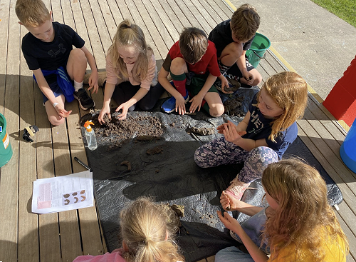 Our Kaitiakitanga group looked at the composition of the soil. We discussed the difference between soil and dirt and got our hands dirty when we tested three different soil samples for their sand and clay content.