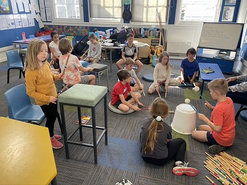 To enrich the Arts Inquiry, each class has specialist music lessons taught by Music Education Centre, and Mr Norwell teaches sketching, woodwork, percussion, and geometric drawing. In addition, we have local artists popping in and a few dogs posing for live drawing!