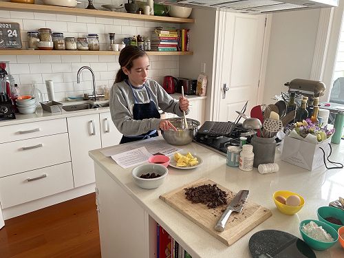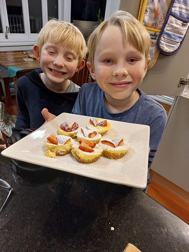 Online food lessons on Zoom have been a big success at Stanley Bay. We have a lot of fun and the students have made some great treats to share at home. Here are a couple of photos from the mini cheesecake lesson, with Zach and Alex proudly displaying their creations, along with Zoe F's masterpiece. Madeline has been working hard in the kitchen and produced this amazing Chocolate Brownie slice. Well done to all our bakers, next up is Savoury Muffins. Look forward to seeing you there. Yum!