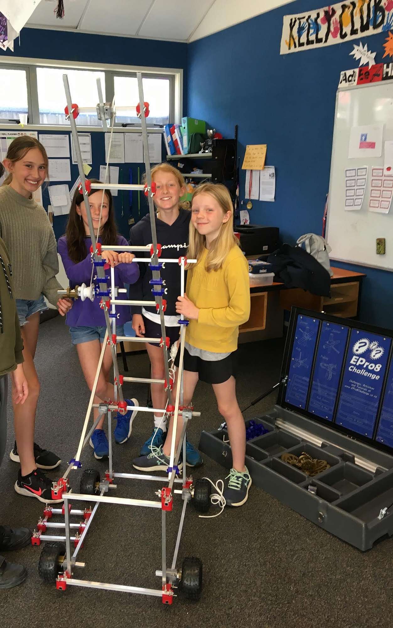 Over the past few weeks seven Stanley Bay teams of year 5/6 students have taken part in a series of EPro8 in-school challenges in which they have used our new EPro8 resource kits to build large-sized structures, solve practical problems, engineer using pulleys, motors, gears, wheels and axles, invent machines that can complete simple tasks and undertake unusual and fun experiments.