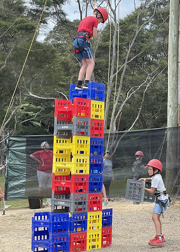 In a valley below some hills is Camp Adair. A place where some amazing and adventurous activities are in store for schools such as Stanley Bay. It all starts with the mud slide, which is a fun water slide that runs down a steep slope into a muddy ditch. As kids whizz down the snake-like slide their smiles are evident from even a distance.There are too many activities to describe but my favourite one was the Flying Kiwi which always gives you a wedgie. I like it because it is a challenge to everyone to get two toys into the bucket while you’re swinging from a rope in the air.